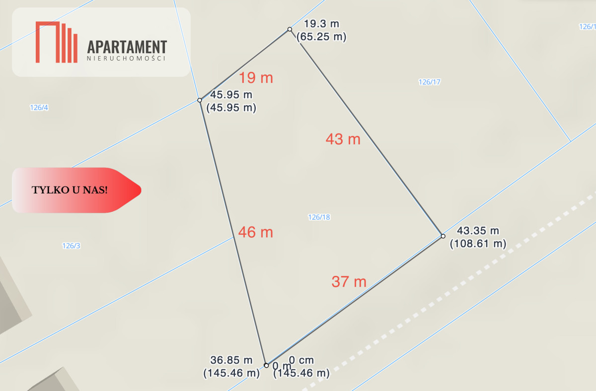 | Długość działki (m): | 43 |