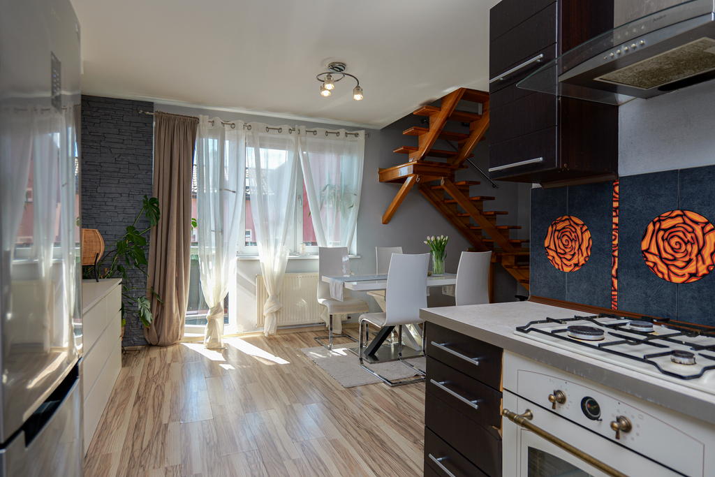 Ogromnym atutem mieszkania są dwa poziomy oddzielając tym samym przestrzeń dzienną od strefy nocnej.