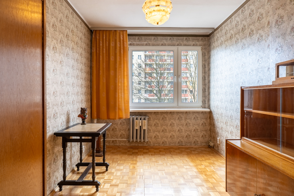 powierzchnia użytkowa: ok. 57,5 m², piętro: 2 z 10, stan: do remontu, udogodnienia: domofon, drzwi antywłamaniowe, winda, miejsca parkingowe ogólnodostępne pod blokiem, media: prąd, ciepła woda z wodociągu miejskiego i pieca gazowego, ogrzewanie: CO miejskie.