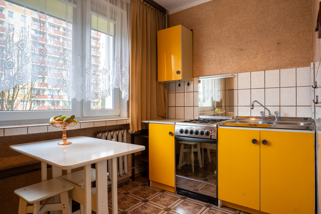 3 pokoje – idealne dla rodziny lub jako gabinet / pokój dziecięcy, kuchnia – widna, oddzielna, wyposażona w meble, lodówkę, łazienka – z wanną i pralką, dodatkowo: balkon klasyczny oraz piwnica ok. 4 m² zapewniająca dodatkowe miejsce do przechowywania.