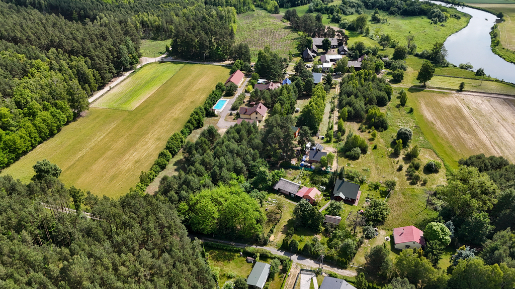 Nieruchomość położona jest na terenie malowniczego Załęczańskiego Parku Krajobrazowego, w urokliwym Zakolu Warty – miejscu o niepowtarzalnym klimacie i wyjątkowej przyrodzie. Działka znajduje się w otoczeniu pięknych, sosnowych lasów, zaledwie 150 metrów od brzegu rzeki Warty. W sąsiedztwie znajdują się nieliczne zabudowania – głównie domki letniskowe i rekreacyjne – co gwarantuje ciszę, spokój oraz prywatność, a jednocześnie nie pozostawia uczucia całkowitego odosobnienia.