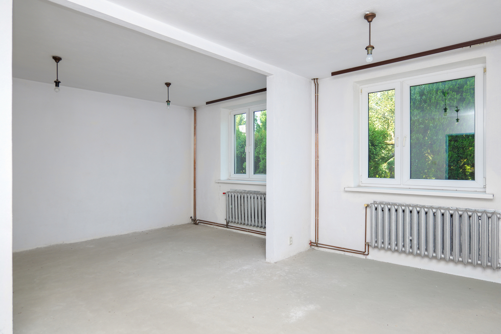 na podłogach: wylewka betonowa, laminat, linoleum.