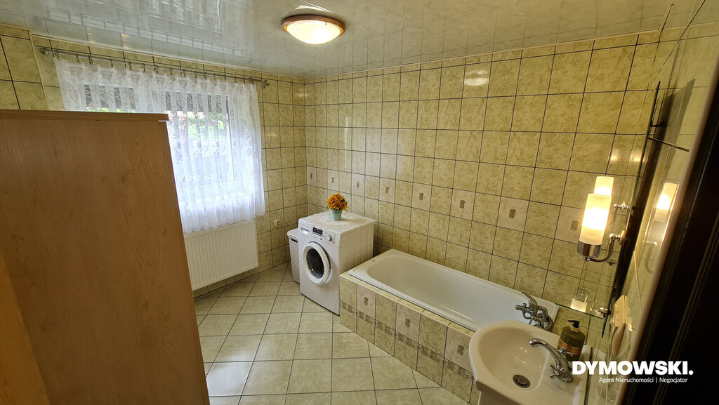 Już na progu znajduje się wiatrołap oraz dostęp do kotłowni, co sprawia, że organizacja przestrzeni jest nie tylko estetyczna, ale także funkcjonalna. Wnętrze budynku zachwyca przestronnym salonem, w pełni wyposażoną kuchnią z barkiem oraz spiżarnią . Praktyczne rozwiązania idą w parze z luksusem, a toaleta oraz oddzielna łazienka z wanną są tego doskonałym przykładem. Piętro budynku osiągniesz za pomocą pięknych drewnianych schodów. To tu znajdują się 3 przestronne pokoje , z czego jeden z nich posiada wyjście na balkon . Dodatkowo, istnieje wyjście na strych, co daje wiele możliwości aranżacyjnych.