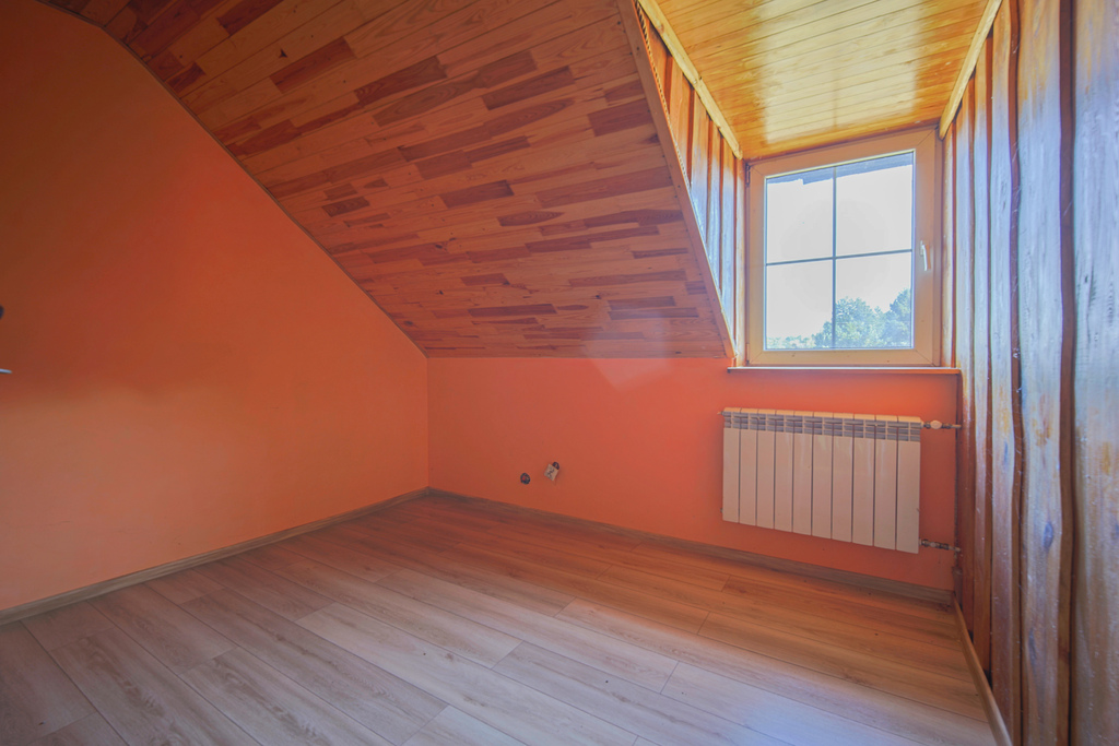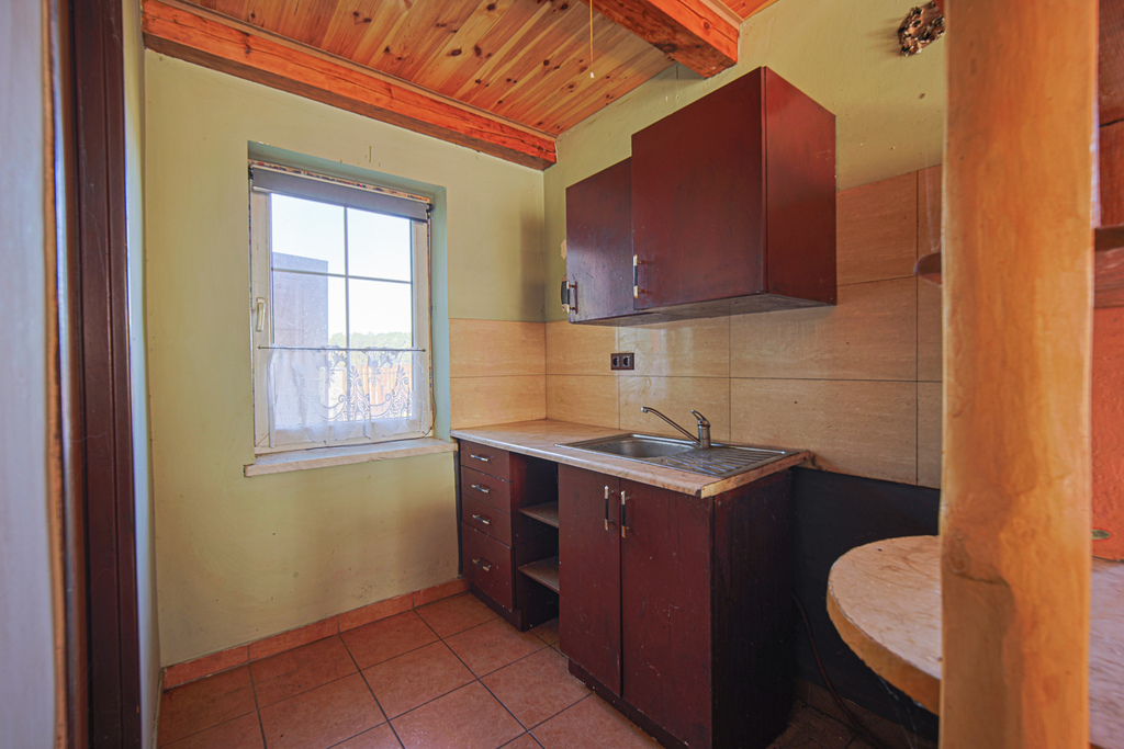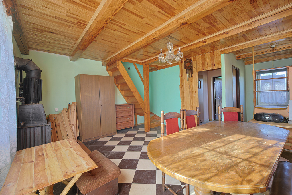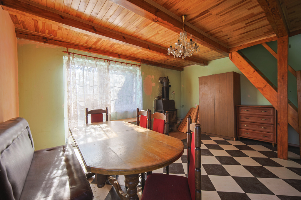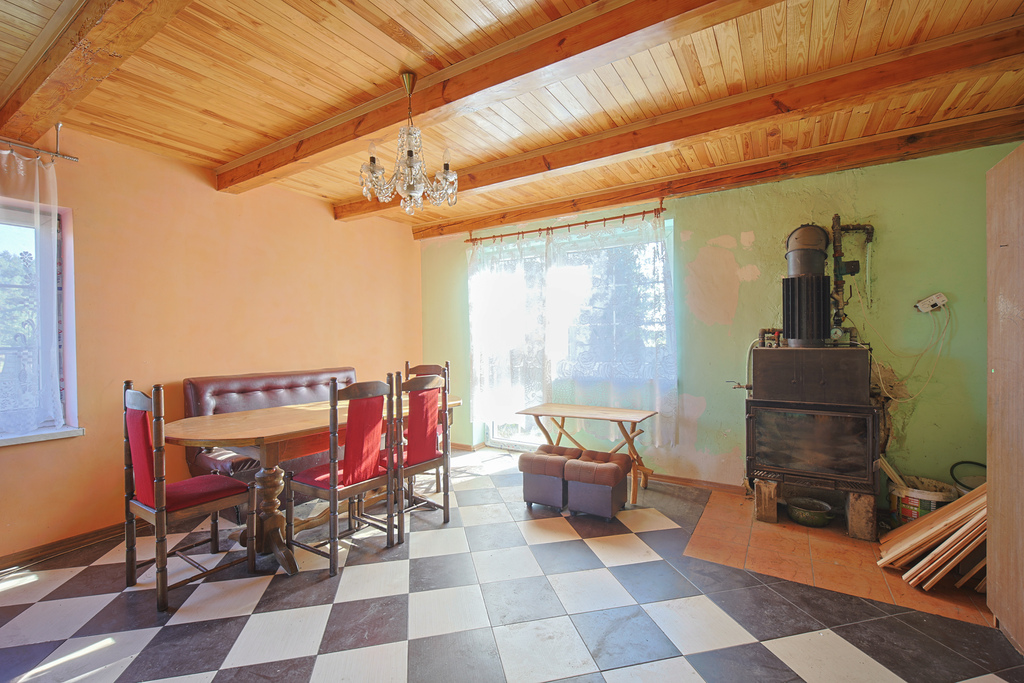 Dom jest częściowo umeblowany – gotowy do zamieszkania lub wykorzystania jako dom letniskowy.