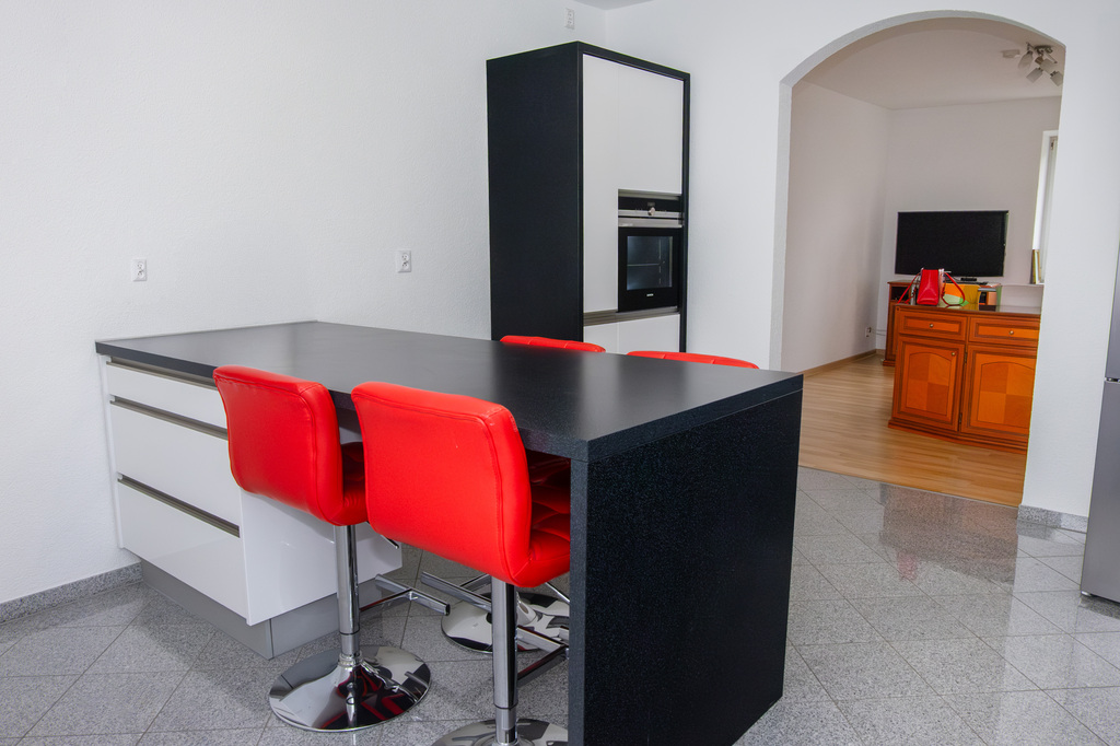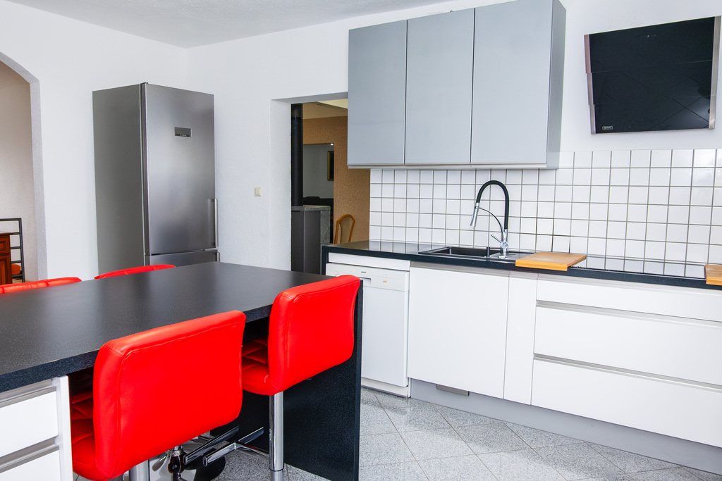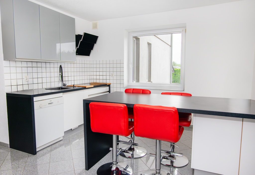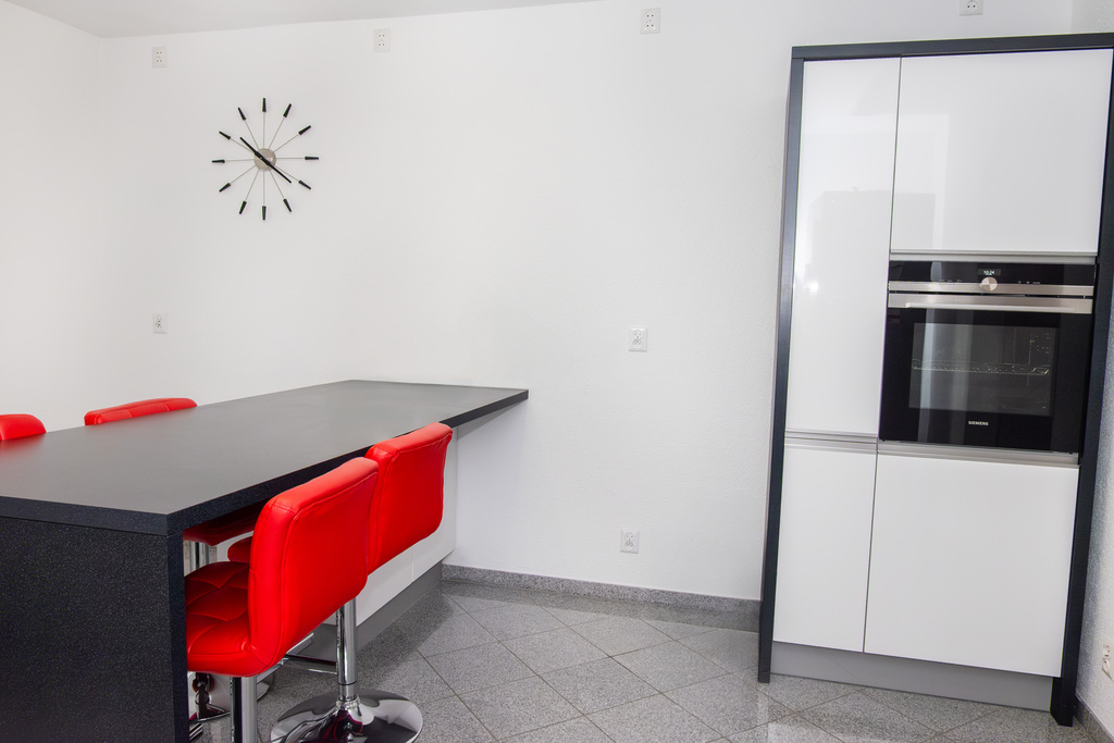 widna kuchnia z pełnym wyposażeniem w zabudowie: meble, lodówka, zmywarka, okap, piekarnik, mikrofalówka, płyta grzewcza elektryczna, zlewozmywak, balkon,
