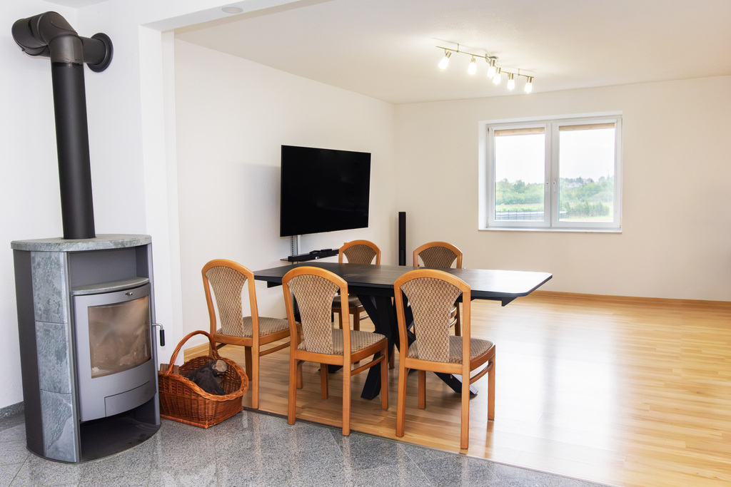 ekologiczne źródła ogrzewania oraz kominek nadający wnętrzom wyjątkowego klimatu,
