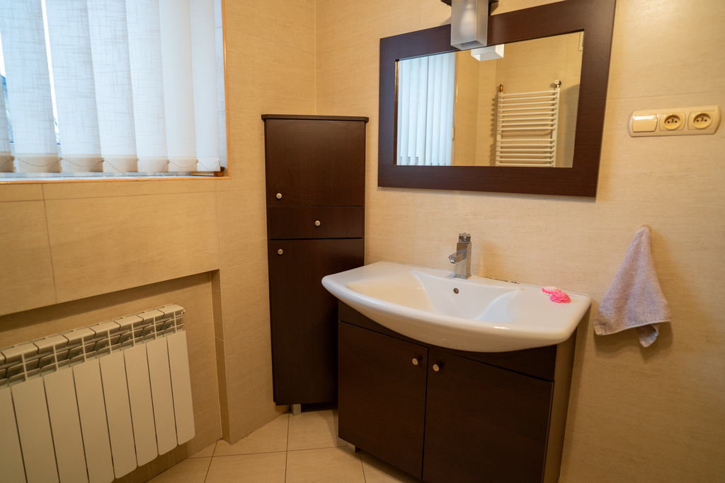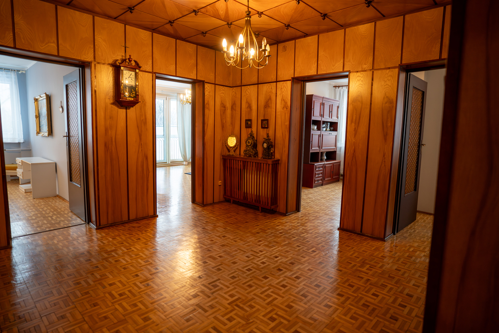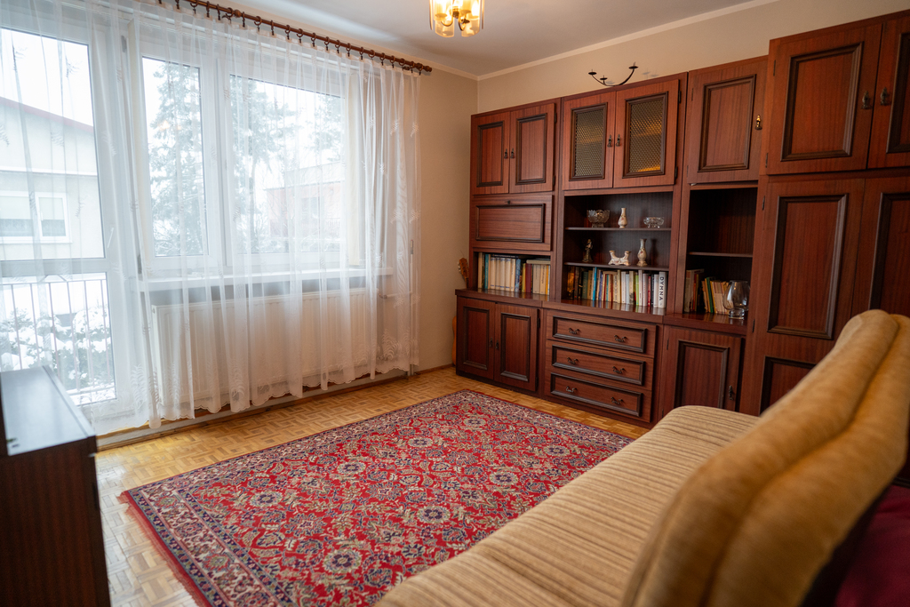 4 pokoje, z czego dwa z wyjściem na balkon,kuchnia oraz spiżarnia zapewniająca dodatkową przestrzeń do przechowywania, łazienka wyposażona w grzejnik drabinkowy, prysznic, umywalkę, WC.