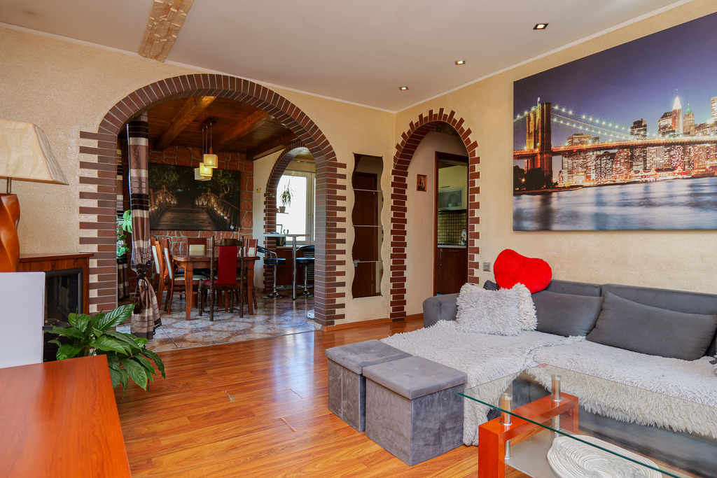 Małgorzata Biskup 660244448Na sprzedaż tylko w naszym biurze!Przestronny apartament który powstał z połączenia dwóch mieszkań. Wykończony z materiałów o najwyższej jakości ze szczególną dbałością o ka...