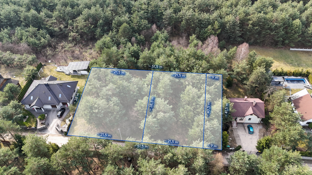 Cechy nieruchomości: powierzchnia łączna działek ~ 2018 m², kształt działki: prostokątny, teren: płaski, wymiary: ok. 40 m x 51 m, działka: nieogrodzona, dojazd: bezpośredni dostęp do drogi publicznej (droga utwardzona).