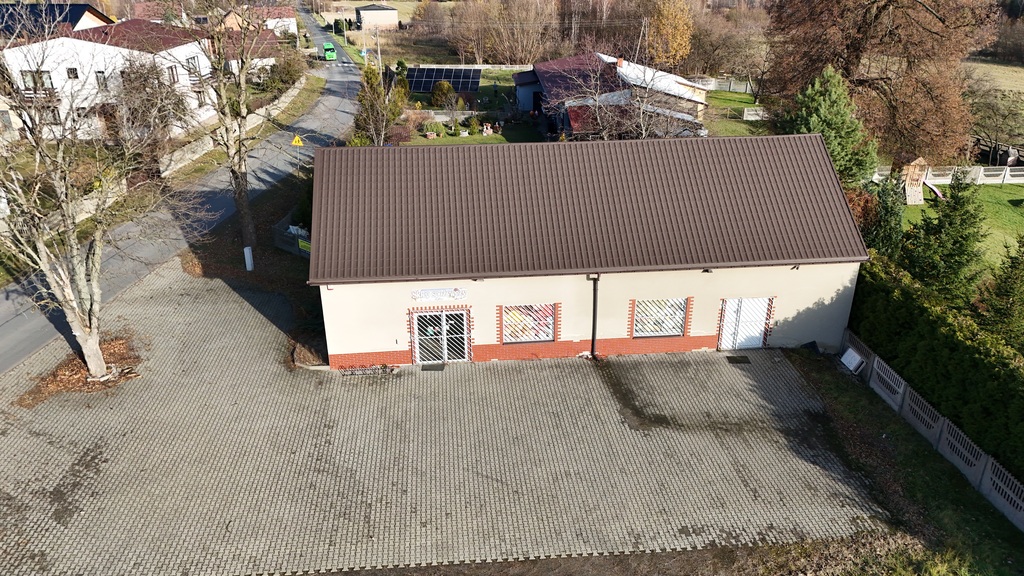 Budynek położony jest w strategicznym miejscu, w obrębie krzyżowania się dwóch dróg, dzięki czemu zapewniona jest doskonała widoczność zarówno z jednej, jak i drugiej ulicy. Przed budynkiem znajduje się niewielki parking, który stanowi niewątpliwy atut dla potencjalnych klientów. Nieruchomość w bardzo dobrym stanie technicznym. Wnętrze jest jasne i zadbane, co sprawia, że nadaje się do dowolnego zagospodarowania, np. pod sklep spożywczy lub lokal gastronomiczny. W budynku założony został także monitoring, w celu zapewnienia bezpieczeństwa.