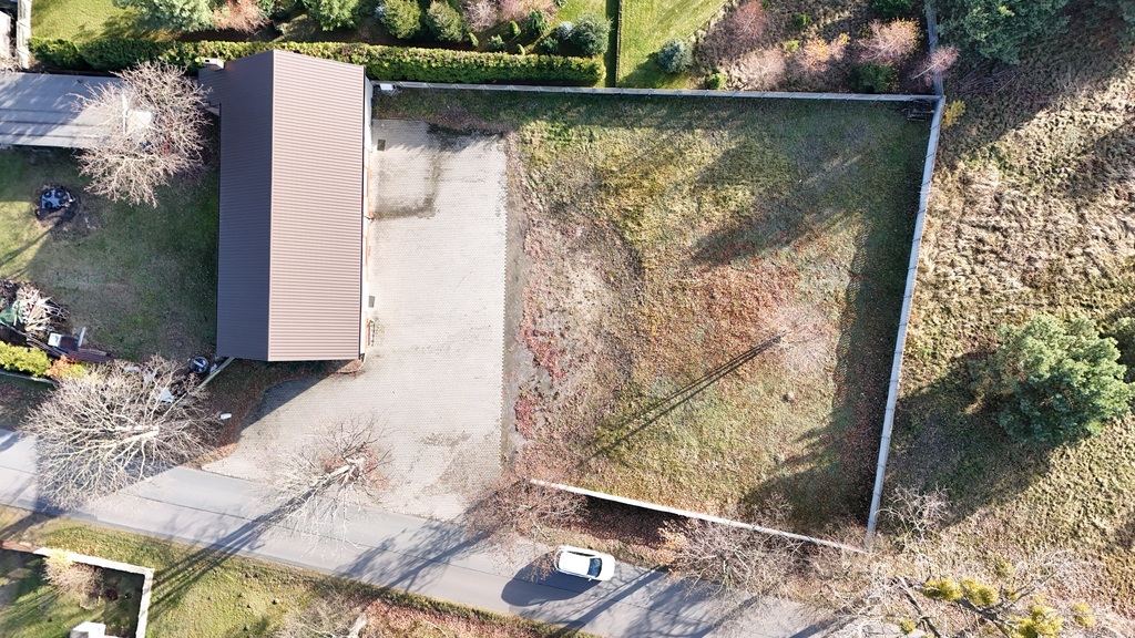 - działka ogrodzona płotem betonowym,