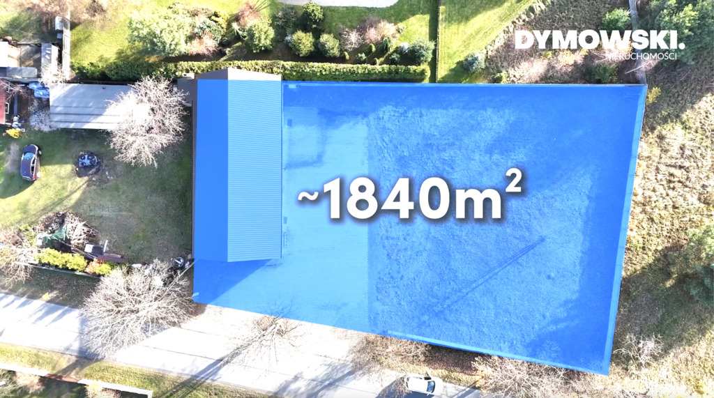 - powierzchnia działki, na której znajduje się budynek wynosi ~ 1840m2,