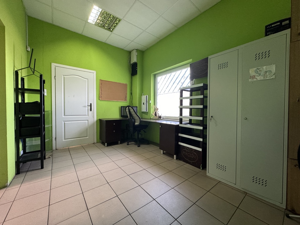 - składa się z dużej sali sprzedaży wyposażonej w klimatyzację, magazynu,pomieszczenia, które może służyć jako biuro, oraz toalety,
