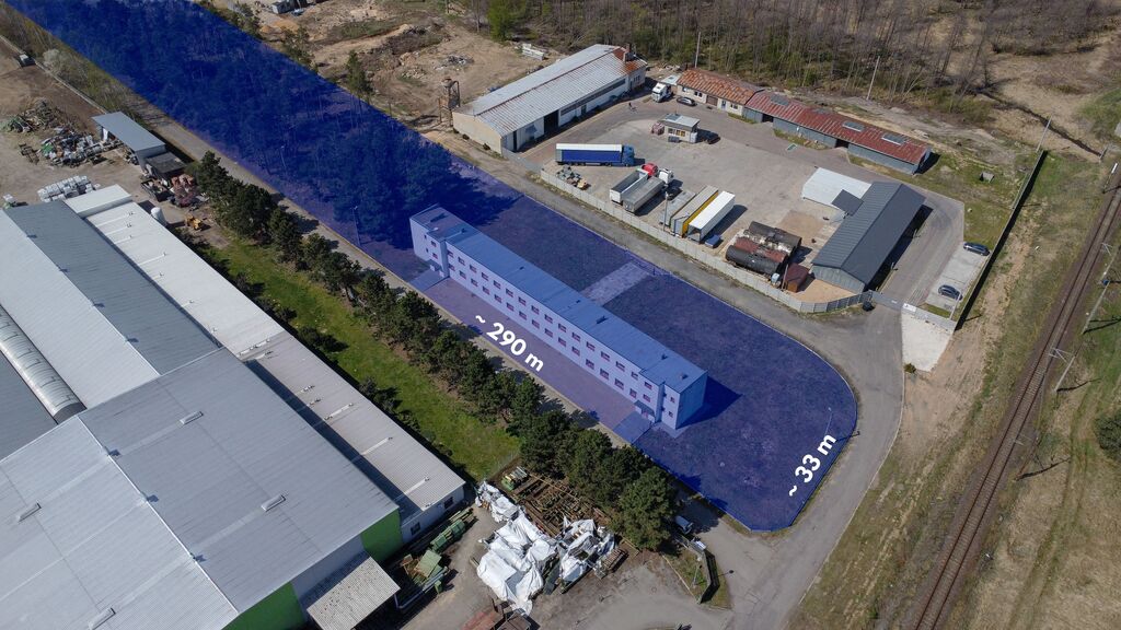 Obiekt przeznaczony pod działalność biurową, usługową, handlową lub magazynową. Duża powierzchnia działki oraz ogrodzenie dają możliwość organizacji przestrzeni zewnętrznej — np. pod parking, plac składowy lub dodatkową zabudowę. Wjazd na teren jest możliwy dla pojazdów dostawczych.