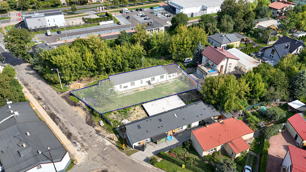 działka o powierzchni ~ 764 m², w tym: budynek biurowy murowany ~ 26 m² oraz 3 budynki przemysłowe o powierzchniach ~ 142 m², 15 m² i 27 m²,