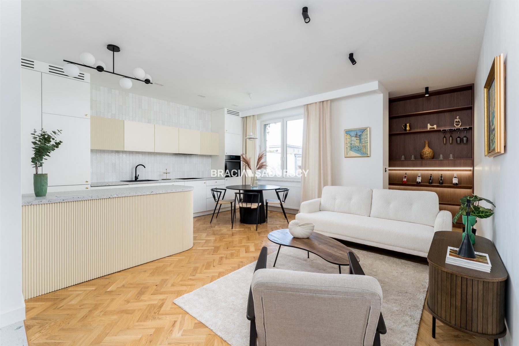 Mieszkanie ma metraż 86,5 m2 i składa się z: salonu z aneksem kuchennym, dwóch sypialni, łazienki, garderoby i przedpokoju. Dodatkowo jest również duża piwnica, także przestrzeni do przechowywania jest sporo.