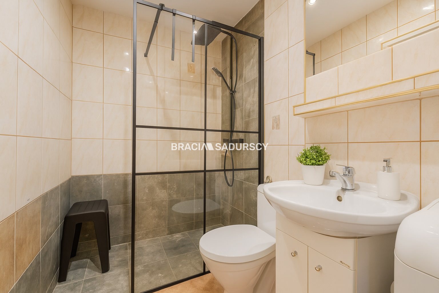 -łazienka z kabiną prysznicową i WC,