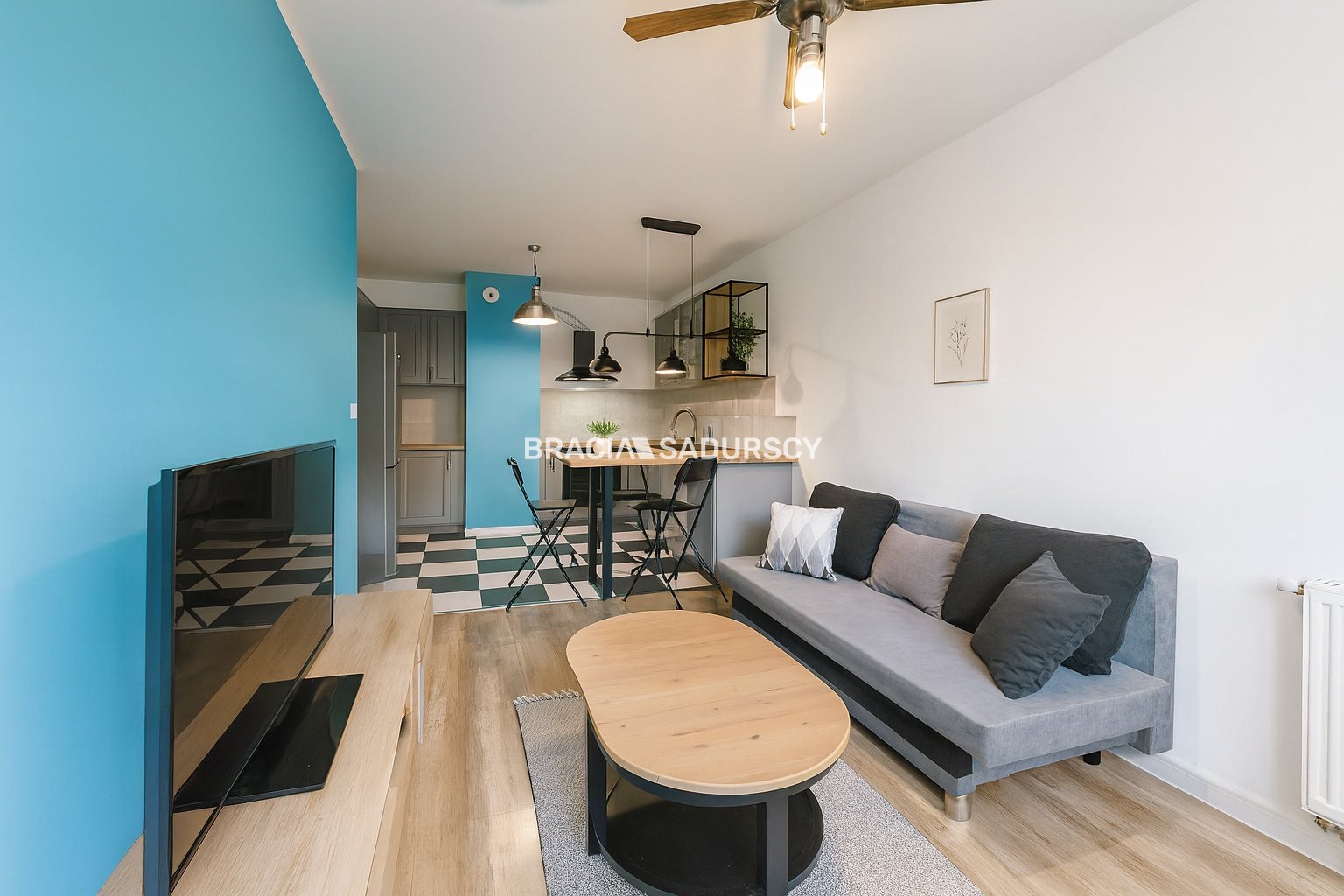 - salon z aneksem kuchennym,