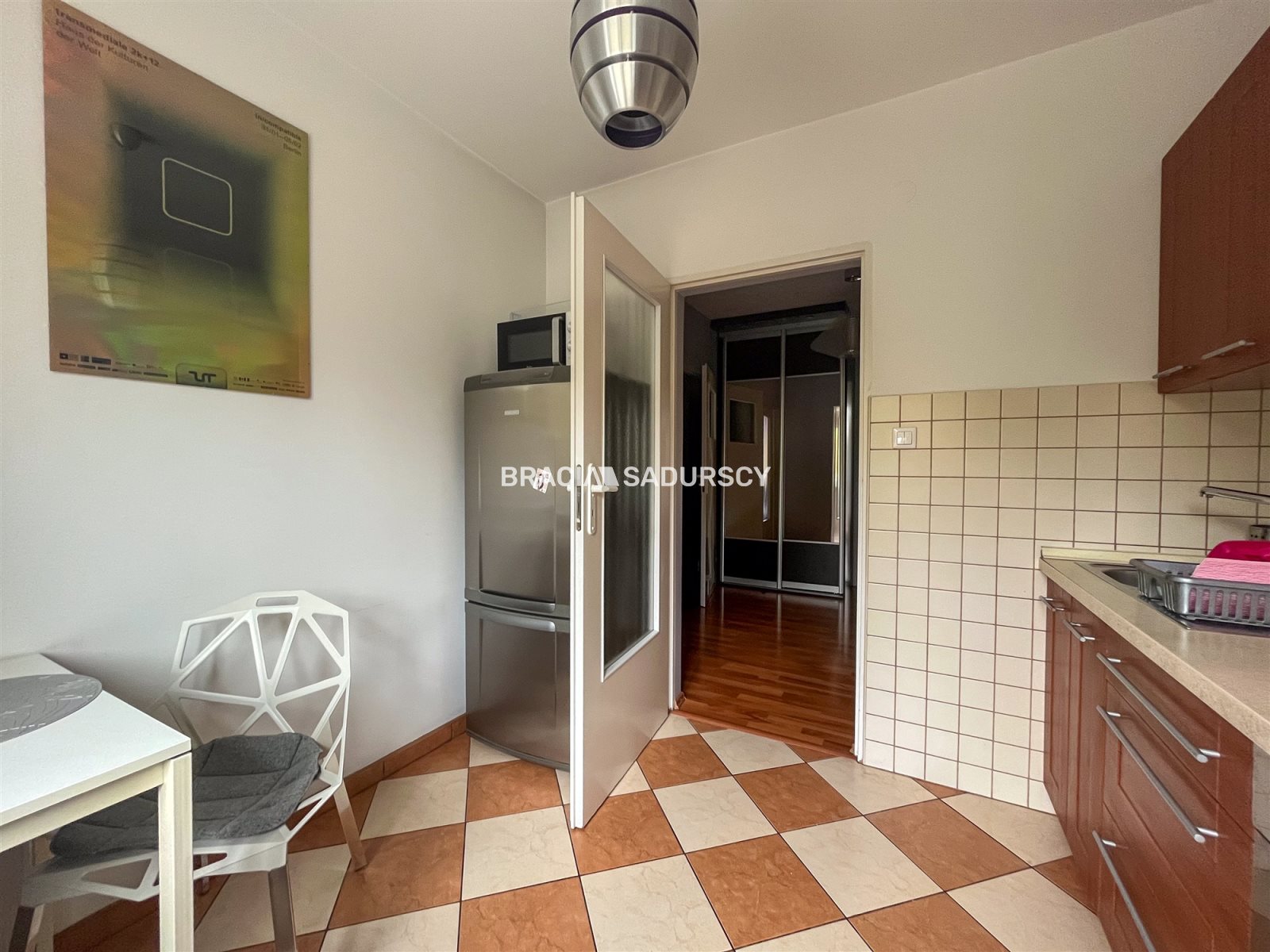 Trzy niezależne pokoje - salon z wygodnym rozkładanym narożnikiem, komodą oraz regałem na książki; sypialnia z dużym łóżkiem, pojemną szafą i komodą. Oddzielna, przestronna kuchnia - zabudowa meblowa z lodówką, piekarnikiem i płytą grzewczą. Łazienka - z wanną, pralką i szafkami. Przedpokój - duża szafa w zabudowie z przesuwnymi drzwiami i lustrem. Balkon - aż 10 m², idealny na odpoczynek.