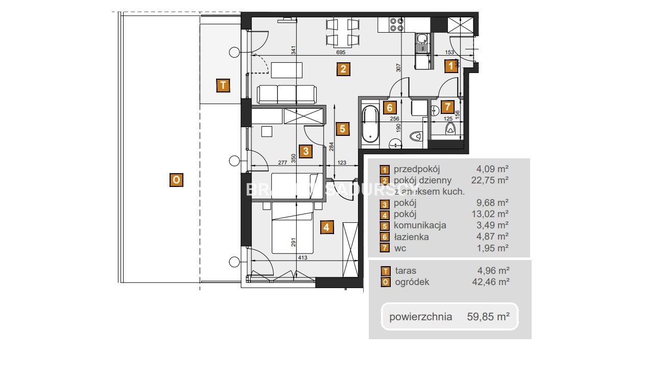 | Pow. użytkowa: | 59.85 m2 |