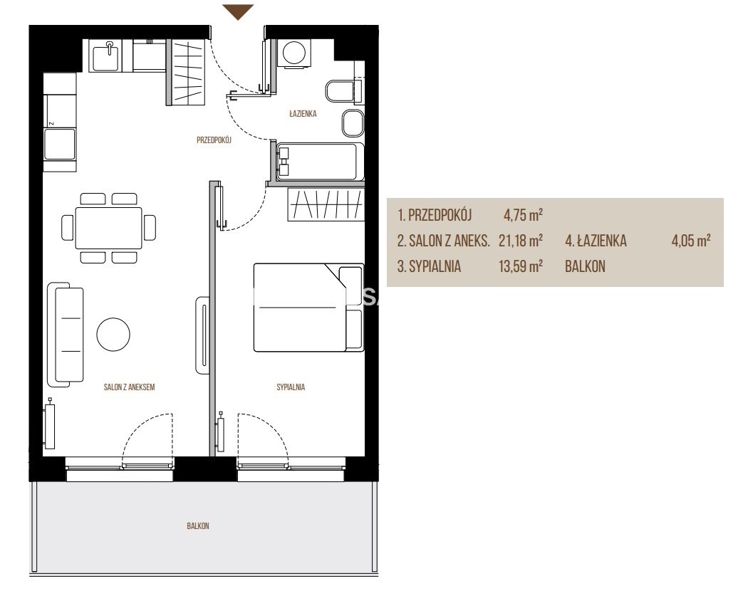 | Liczba sypialni: | 1 |