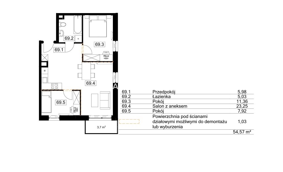 | Pow. użytkowa: | 53.38 m2 |