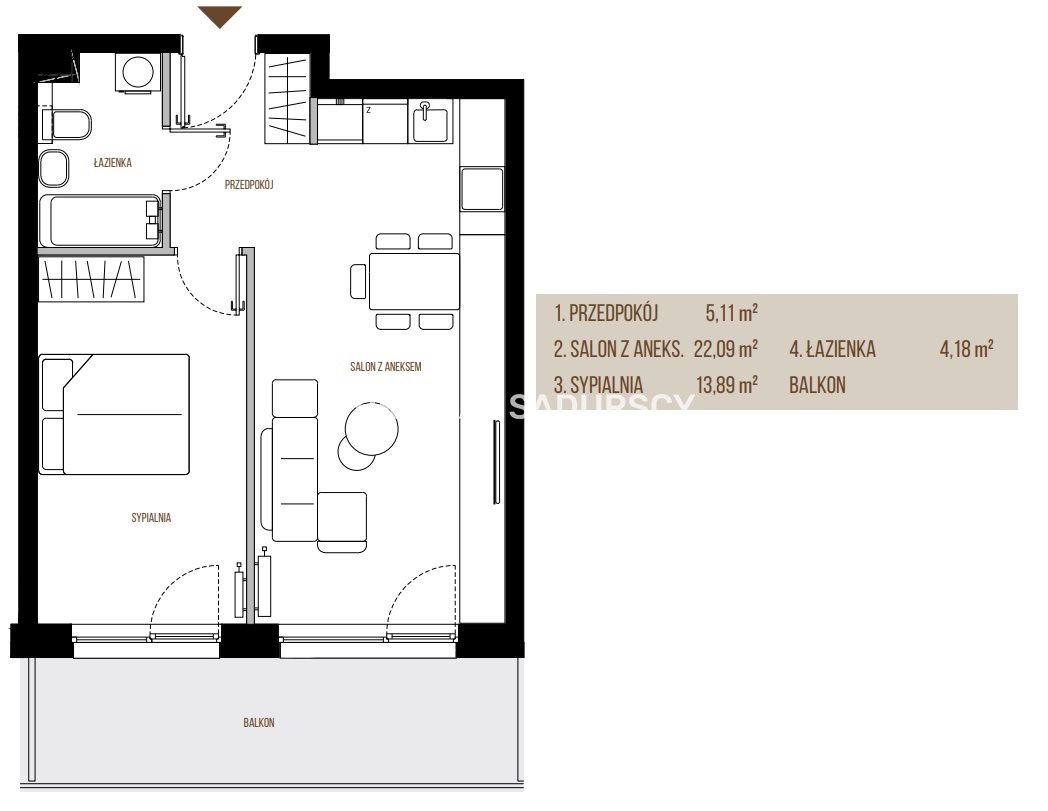 | Liczba sypialni: | 1 |