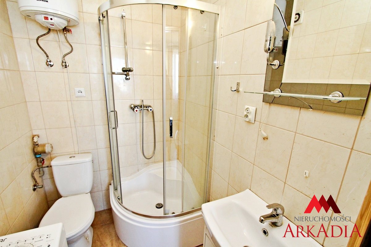 Okna PCV . Sciany malowane. Łazienka z prysznicem , umywalka, WC.