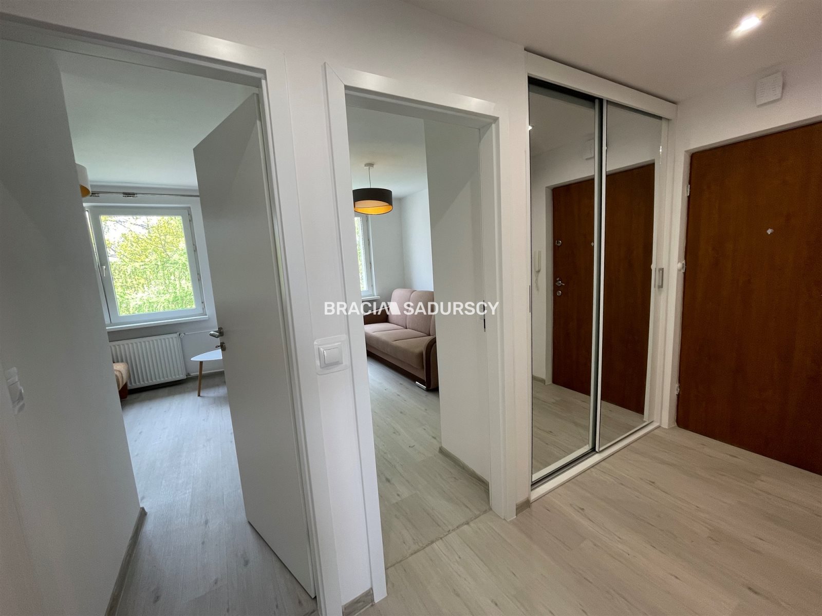 Pierwotnie mieszkanie było 2-pokojowe z osobną kuchnią — dzięki zmianie układu funkcjonalnego zyskało dodatkowy pokój, co sprawia, że idealnie sprawdzi się zarówno dla pary, rodziny, jak i osób pracujących zdalnie lub współdzielących najem.