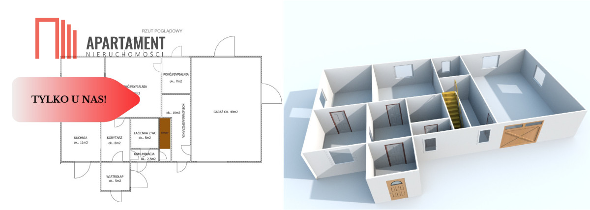 - bardzo duży garaż w bryle budynku (aż ok. 49 m2)