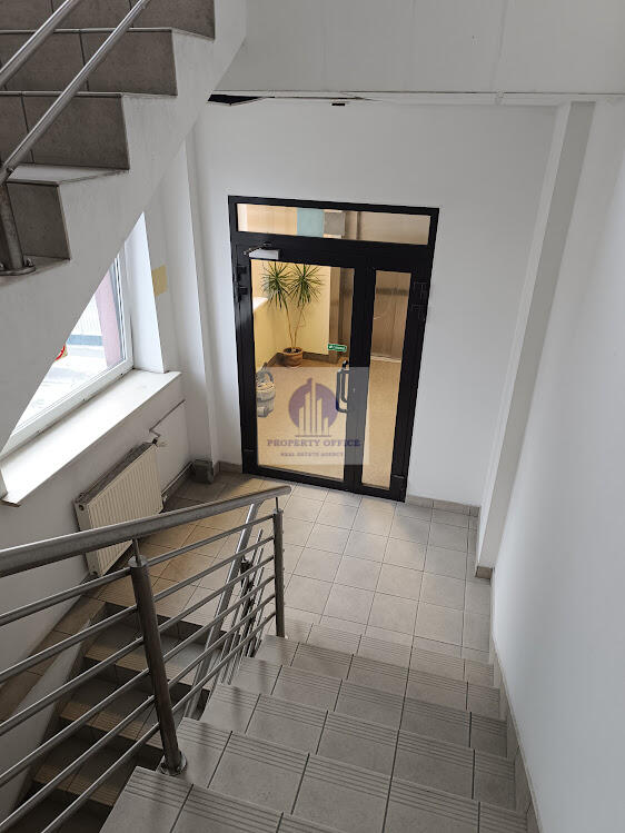 Oferowany lokal biurowy to open space przedzielony poprzecznie ścianką z drzwiami.