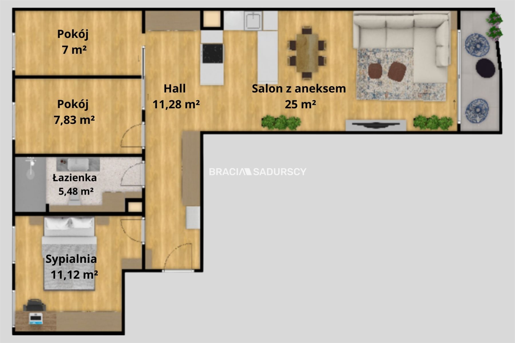 2 dodatkowe sypialnie (7,83 m² i 7 m²)
