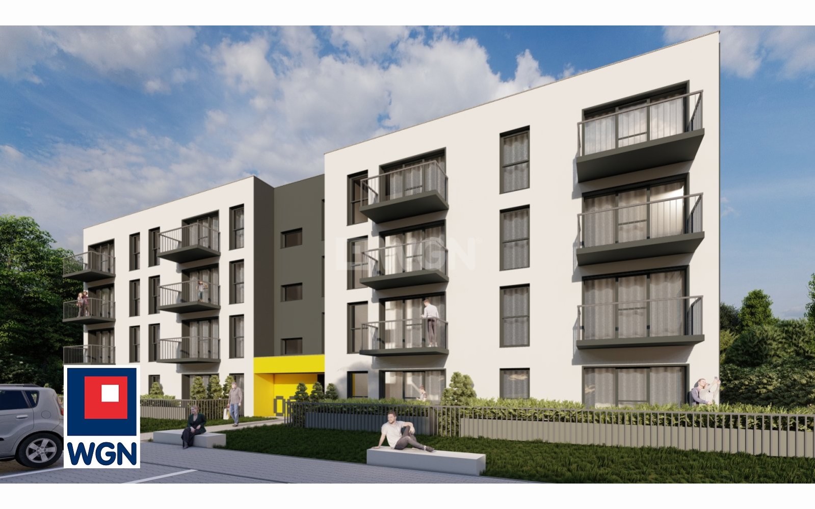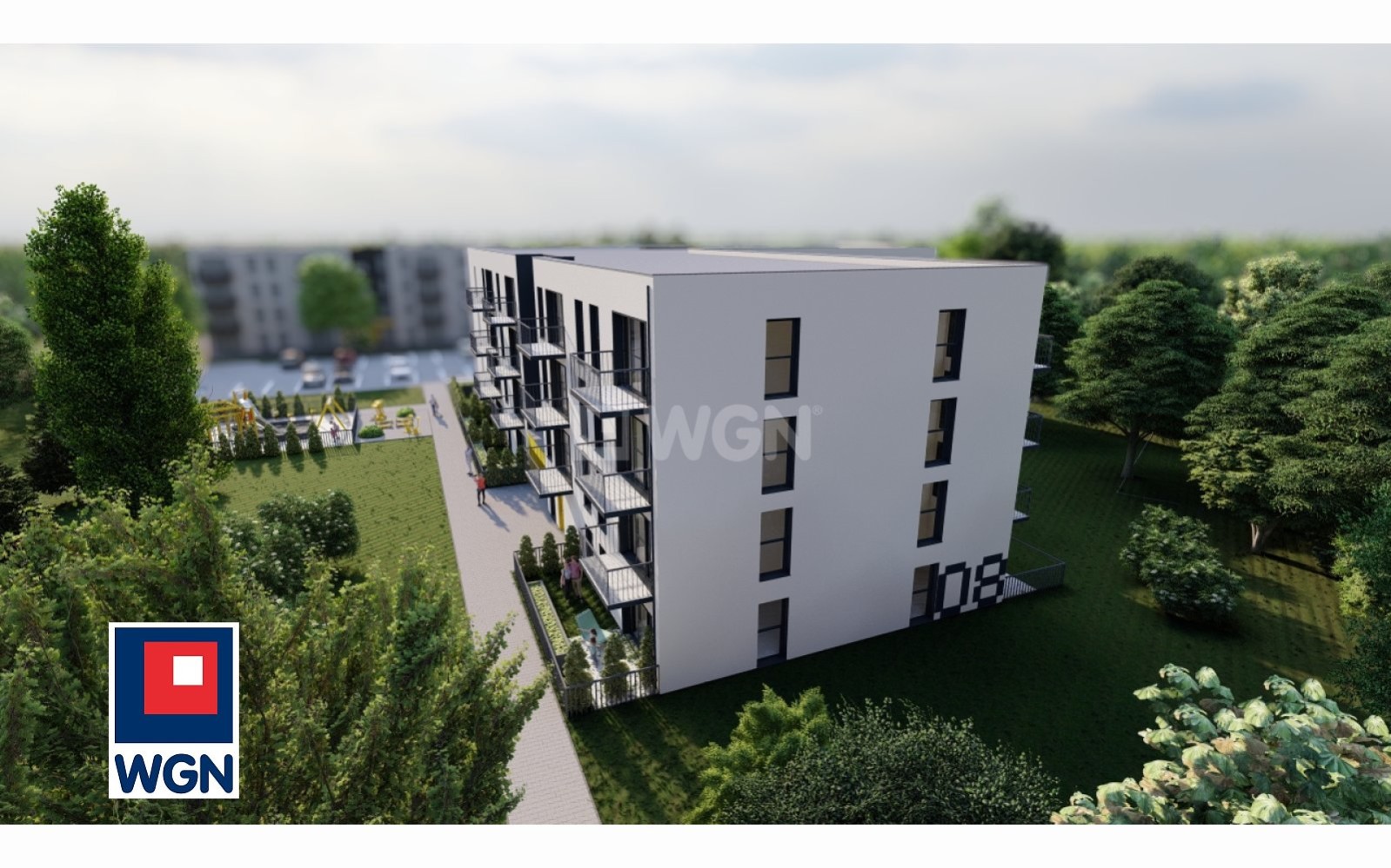 - tereny zielone i miejsca postojowe przy budynku,