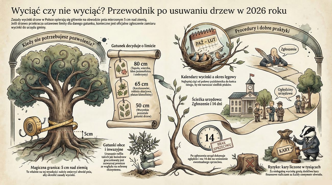 Wycinka drzew na działce w 2026 roku – kompletny przewodnik po przepisach