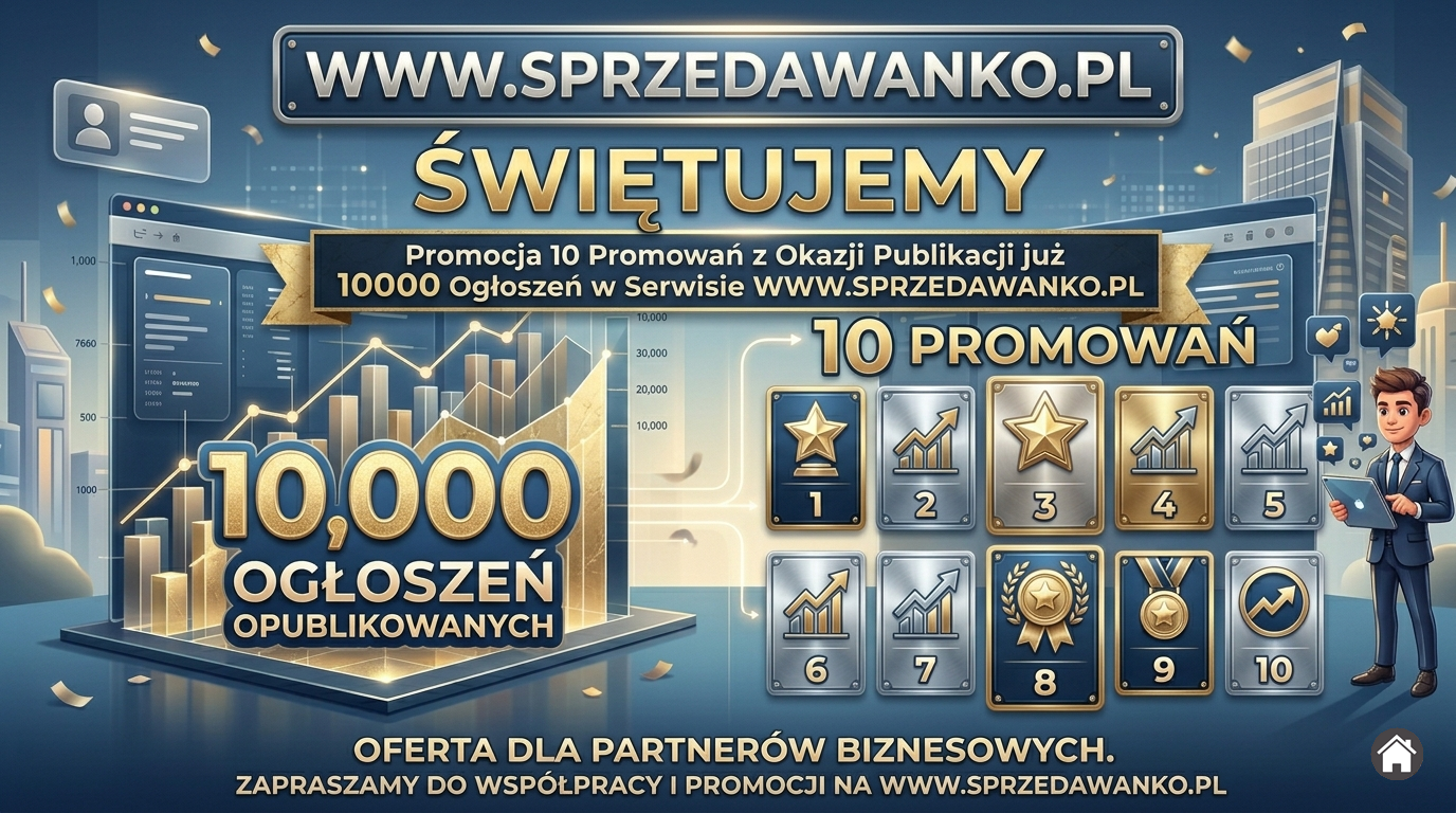 Szanowni Państwo, dziękujemy za dotychczasową współpracę, zaufanie i zapraszamy do wspólnego świętowania z okazji PUBLIKACJI 10.000 OFERT w naszym serwisieWWW.SPRZEDAWANKO.PL