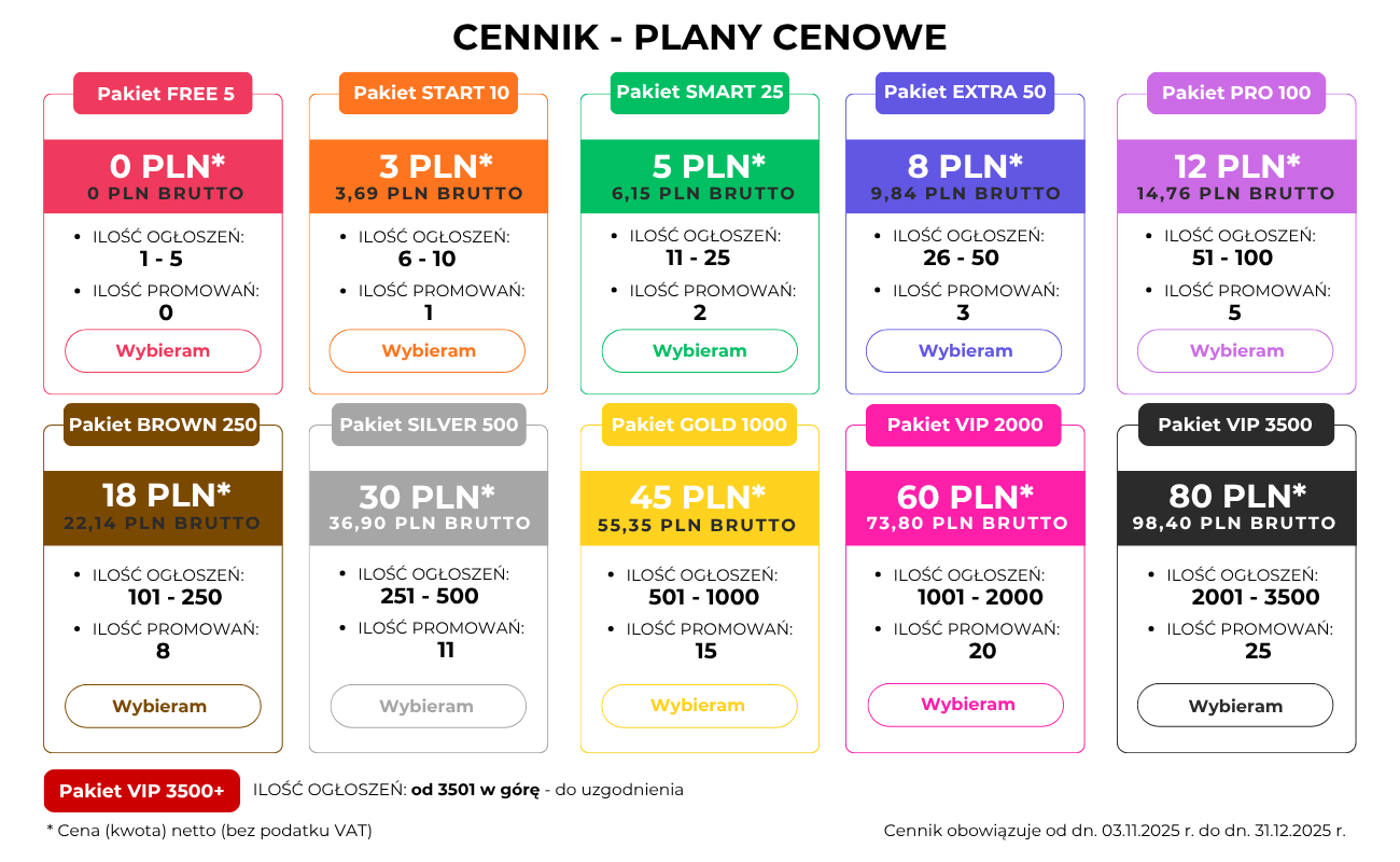 Ostatnia aktualizacja cennika: 03.11.2025 r.